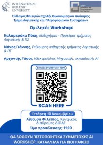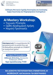 Ο σύλλογος φοιτητών Σχολής Οικονομίας και Διοίκησης προσκαλεί στο εξειδικευμένο σεμινάριο με τίτλο: AI Mastery Workshop